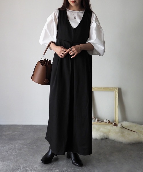 【Riberry Vネック切替タックジャンパースカート】 多彩なスタイルが楽しめる大人かわいいジャンパースカート♡ ■Styling トレンドのジャンパースカートはタック入りのフレアスカートでインナー次第で雰囲気を変えることができます。 Tシャツはもちろん、ブラウス、ニットなど秋~冬まで楽しんでいただけます◎ 春先にもおススメ♡ パンプスやブーツと合わせてきれいめコーディネート、スニーカーと合わせてきれいめカジュアルコーデも楽しめます♪ ■Detail ハイウエストの位置で切り替えているので脚長効果があります。 スカートは広がりすぎないシルエットのため、大人っぽく着れるのがポイントです◎ ■Material さらっとした素材感なので様々な季節で着用可能です◎ ※この素材は摩擦(特に湿った状態での摩擦)や、 汗や雨などでぬれた時は他の衣料や下着・バッグなどに色が移る事がありますので、ご注意下さい。 ※詳しいお手入れ方法は商品タグをご参照ください。 #ジャンパースカート #大人かわいい #Vネックワンピース 【Information】 ◆《お気に入り登録》がオススメ◆ ・「商品のお気に入り登録」で再入荷通知や、ラストの通知、セール通知も受け取ることが出来ます。 ・「ブランドのお気に入り登録」で新商品や再入荷など、お得な情報を受け取ることが出来ます。 ※撮影時のライティング、ご覧になっているモニター・PC環境により、実際の商品と色味が異なって見える場合がございます。予めご了承をお願い致します。