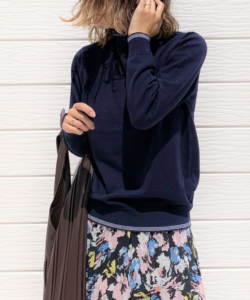 ハイネック部分がフリルになったニットです。 衿、裾、袖に入った細ボーダーがアクセントに。 甘くなり過ぎないデザインで、シンプルなインナーニットとして着回しも◎ 滑らかな肌触りの素材を使用しているので着心地も快適。 コンパクトめなサイズ感なので、アウターのインナーやボリュームのあるボトムスとの相性も抜群です。 《インフォメーション》 ◆商品のお気に入り登録 完売していても再入荷時に再入荷通知を受け取ることができますので、是非ご登録ください。 ◆ブランドのお気に入り登録 新商品や再入荷などの情報を受け取ることができますので、是非ご登録ください。
