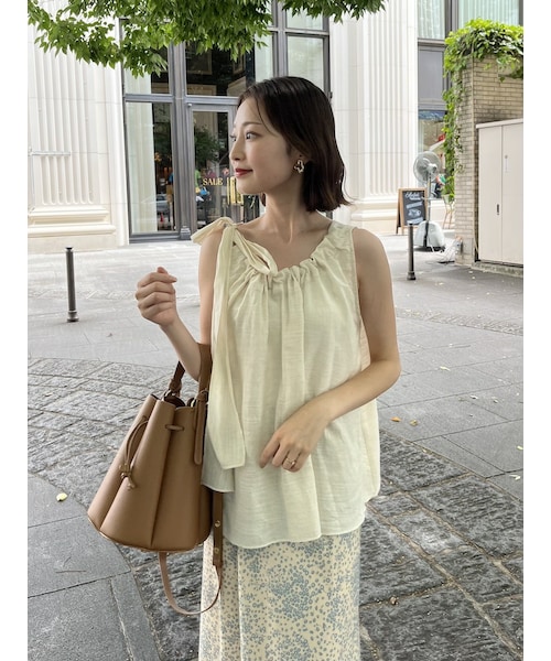 ショルダー部分のリボンが長めになっているのが 他にないNEAMらしい一癖ポイント!! 同時発売のFLORET SKIRTと合わせたコーディネートが おすすめです✨ IVORYとBROWNの2色展開で違った雰囲気を味わえます☝️ 【SIZE】 着丈 47CM/ 身幅 100CM / 首幅 22CM / 肩幅 30CM / 袖口幅 20CM ※平置きでの採寸となります。サイズには1~2CMの差が出る場合がございますがご了承ください。 【素材】 リネン 70% ポリエステル 30%