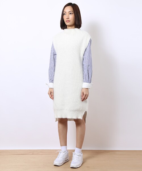 【CINOH】ノースリーブボトルネックプルオーバー (C1415AWKN09)【同じアイテムの他のカラーはこちらから】【ホワイトはこちら】ふわっとしたニットがポイントのアンゴラ混ノースリーブプルオーバー。ストライプロングシャツやベーシックシャツと合わせるだけで一味違ったコーデを楽しめます。CINOH(チノ)アイテム一覧はこちらCINOH(チノ)2014AutumnWinterCollectionLOOKBOOK