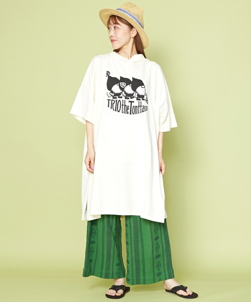 ●○ TRIO the TONTTARO ○●北欧フィンランドでは各家庭に必ずと言ってよいほどサウナがある。そのサウナ室に住むとされている妖精「トントゥ」をテーマにしたデザイン。TRIO the TONTTARO(トリオ ザ トンタロー)は、トントゥの子孫。サウナ小屋を守る妖精トリオ。白樺の葉(ヴィヒタの元)を身につけ、お行儀が悪いサウナーをそっと白樺の葉で叩く。常に3人で行動。TRIO the TONTTAROをプリントした遊び心のあるデザイン。ポンチョ風シルエットで、着心地の良いフード付きワンピース。愛着の沸くデザインにあなたも虜。抗菌防臭機能付き。※こちらの商品は1点1点職人による手作りとなります。その為、形や色合いなど若干異なる場合がございます。あらかじめご了承ください。<価格改定のお知らせ>2024年5月21日より、素材費高騰の諸事情により価格改定をさせて頂きます。商品タグに記載している価格につきまして、旧価格のものが混在している場合がございます。ご了承くださいますよう、お願い申し上げます。Amina Collection Co.,LTD.