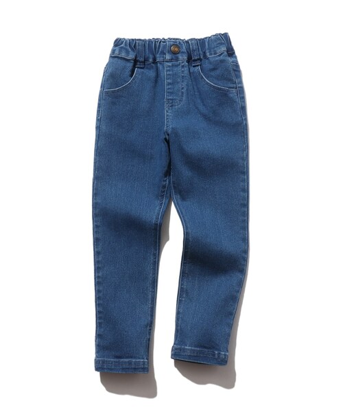 【デザイン】 ストレッチの効いたデニム素材のフルレングスパンツです。 定番アイテムのデニムパンツはストレッチの素材が元気に動き回るキッズにおススメ! バックポケットには大きめのデザインネームがポイントになっています。 通年着回せるアイテムなので通園・通学服としても活躍しそう♪ サイズ展開も豊富なので、兄弟や姉妹でリンクするのも素敵ですね。 ※ポケット数:横×2 後×1 【生地感】 さらりとした肌触りのコットン(綿)素材を使用しているのでママも安心の着心地です。 ※裏地なし ※モデル画像と商品単品の画像はそれぞれ、照明や太陽光の関係により実際よりも色味が違って見える場合があります。(実際のお色味に近いのはスタジオで撮影した単品画像です) またパソコン・スマートフォンなどの環境により、若干製品と画像のカラーが異なる場合もございます。予めご了承ください。 店舗へのお問い合わせ商品番号:122-65038 ●製品寸法: 09(90cm):W40~50cm H52cm 股下31cm 前股上19cm 渡り幅16cm 裾幅9cm 10(100cm):W42~52cm H56cm 股下38cm 前股上21cm 渡り幅18cm 裾幅10cm 11(110cm):W44~54cm H59cm 股下45cm 前股上23cm 渡り幅20cm 裾幅11cm 12(120cm):W46~56cm H62cm 股下51cm 前股上24cm 渡り幅21cm 裾幅12cm 13(130cm):W48~58cm H65cm 股下57cm 前股上25cm 渡り幅22cm 裾幅13cm 14(140cm):W50~60cm H68cm 股下63cm 前股上26cm 渡り幅23cm 裾幅14cm 備考: