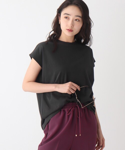 【My style is...掲載】 シルクのように美しく滑らかな「SILKYSUPIMA/シルキースーピマ」シリーズ カバー力の高さが魅力の、フレンチスリーブカットソー 【デザイン】 リラクシーなシルエットにラウンドテールのデザインで、カバー力の高いデザインカットソー。 やや長めの着丈と裾のラウンドテールでお尻周りを自然にカバーし、ボトムにアウトでも着やすいバランスに。 自然に少し後ろに抜けたシルエットになるように、前後の丈に差をつけています。 自然に肩にかかるように計算したフレンチスリーブは二の腕をスッキリとカバー。 ベーシックながら一枚で存在感があり、アクセサリーなどをプラスして楽しんでいただくのもおすすめです。 【素材】 シルクのような光沢と滑らかさをもった「SILKYSUPIMA(シルキースーピマ)」を使用しています。 アメリカ産の超長綿である、希少なSUPIMA COTTON(スーピマコットン)を100%使用し、さらにマーセライズド加工という特殊な加工を加えることで、より滑らかで美しい表面に仕上げたカットソー素材です。 スムース編みにすることで透け感を抑え、シワになりにくい機能性もうれしいポイントです。 ※こちらの商品はやや透け感があるため、インナーの着用をおすすめします。 こちらの商品は主に秋に着用いただける商品です。 モデル情報:身長168cm B78 W60 H87 着用サイズ:38(M) 店舗へのお問い合わせ商品番号:637-15214 ●製品寸法: 36(S):着丈69cm B109cm 肩幅57cm 38(M):着丈70cm B112cm 肩幅58cm 40(L):着丈72cm B115cm 肩幅59cm 42(LL):着丈72cm B118cm 肩幅60cm 備考: