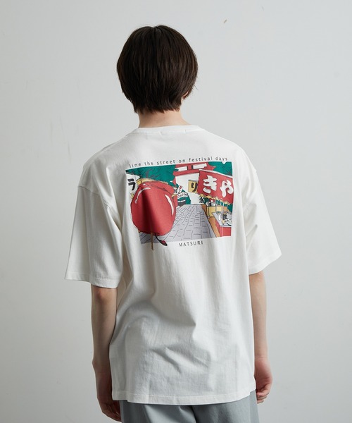 ■素材、機能 こだわりのUSAコットンを使用しキレイな表情が特徴です。 薄すぎず厚すぎないちょうど良いコットンを使用し安っぽくならず伸び感も良く快適な着心地です。 環境に負荷の少ない工程で作成したサスティナブルな素材です。 ■シルエット、デザイン 通常よりも少しワイドなシルエットでインナーでも1枚着でも着やすいサイズ感になっています。 プリントデザインはノスタルジックをテーマにガス灯や縁日、宿場町など大正や昭和をイメージしたどこか懐かしい風景をイラストに起こして背中にプリントしました。 左胸にワンポイント刺繍+バックプリントのシンプルなデザインなのでユニセックスでも着やすいアイテムです。 ■カラー ニュアンスカラーを含んだ3色展開です。シンプルで着用し易くカジュアルな着こなしに最適です。 ■スタイリング バックプリントがメインのデザインなので、一枚着で着るのがオススメです。 程よいサイズ感なのでパンツのシルエットや素材感などは気にせずにオールラウンドに合わせやすいアイテムです。 裏地:なし 透け感:なし 伸縮性:あり 生地感・厚さ:普通 ポケット:なし その他仕様:なし