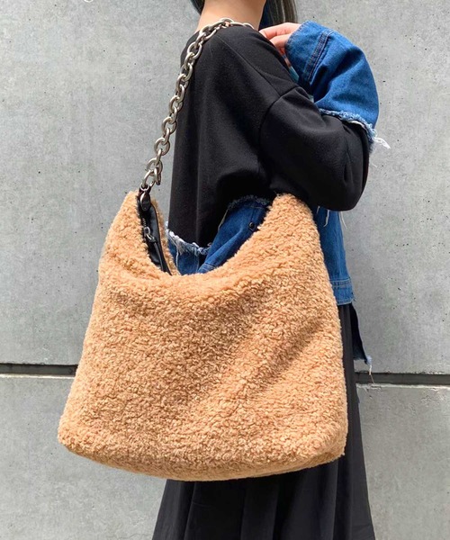 デザイン性の高い大容量のトートバッグ。 秋冬定番アイテムのファーバッグに、大きめなチェーンデザインをハンドルに使用することで一気にモード感をプラス。 ハンドルは取り外し可能なので、お持ちのベルトなどに付け替えて雰囲気を変えることもできます。 内側にはジップ付きポケットを含めて3つのポケットが付いているため、小物をバラバラにならず収納ができます◎ プチ旅行や荷物の多いお出かけの日にもオシャレに持ち運べるのも嬉しいポイントです。 スカートやワンピースと合わせてとことん女性らしく合わせるのはもちろん、デニムなどカジュアルスタイルのハズシアイテムとしてもおすすめです。 ■天然皮革の為、色むらや軽微な傷、押された痕、または生前からの傷、筋、しわ等が残っていることが通常です。また、色移りする場合もございます。 これらは全て革製品の特性ですので予めご了承下さい。 ■撮影状況や光によって、質感・色合いが実際の商品と異なって見える場合がございます。