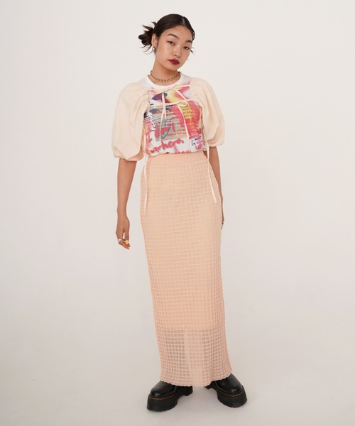 チェック柄のような凸凹感のある編地で仕上げたシアーニットスカート。 スッキリとしたストレートシルエットが様々なコーディネートとマッチ。 同デザインのトップス(tnj411-0433)とのスタイリングもオススメ。 p o i n t ・ロングシーズン取り入れやすい、程よく清涼感のある素材を使用 ・後ろスリット入り ・ウエスト部分はトップスインもスッキリと決まる総ゴム仕様 ・両脇は縫い代をあえて全て表出しにしアクセントに ・裏地付き 【お取り扱い上の御注意】 <お届け時のシワにつきまして> ページで着用している商品は撮影前に全てプレスをかけております。 その為お送りする商品は畳みジワや細かいシワがついている場合がございます。 ご了承くださいませ。 <色移り・色落ちについてのご注意点> この商品は摩擦(特に湿った状態での摩擦)や汗や雨などでぬれた時は他の衣料や下着に色が移る事がありますので、十分ご注意ください。 <お取り扱いご注意点> ・ネット使用 ・つけ置きや濡れたままの放置禁止 ・あて布使用 ・先の尖ったものやざらついたものに引っ掛けた場合、糸が飛び出すことがあります。アクセサリー、ベルト、バッグなどには十分ご注意ください。 ・デリケート素材のため着用や取り扱いには注意してください。 ・ラベルは大切に保管し、表示通りの取り扱いを行ってください。 ・濃色は雨や汗等で湿った状態のまま摩擦されると色が移る場合があります。 ・退色を防ぐため光の当たらない場所で保管してください。 ・自重伸びや外観変化を防ぐためハンガー等に吊り下げての保管はさけ、軽く折りたたんだ状態で圧力が加わらないように保管してください。 こちらの商品画像は、スタイリングの雰囲気に合わせて撮影方法を変えた関係で、カットにより光の当たり具合が変わり、色味が異なって見えます。 現物のカラーは、商品画像最後の画像でご確認くださいませ。