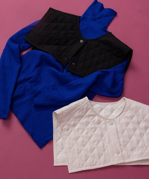 今までになかったデザインのつけ衿 キルティング素材が今年らしさも 【Design】 秋冬らしいキルティング素材のつけ襟。 カジュアルな素材感なので甘くなり過ぎず、 程よいボリューム感で小顔効果も叶えてくれます。 今までになかったデザインのつけ衿なので、 ワンランクアップしたコーディネートが完成します。 シンプルなTシャツやスウェットに合わせた コーディネートがおススメです。 【Material】 適度な厚みもあり、柔らかく優しい肌ざわり。 中綿入りなので暖かく着用していただけます。 【Coordinate】 デザイン性のあるつけ衿なので、 合わせるアイテムはシンプルなトップスがおすすめ。 カラーハイネックリブニットにデニムスタイルのシンプルコーデも このつけ衿をつけるだけで、こなれ感満点。 カジュアルスタイルのスウェットにも相性抜群なので、 色々なアイテムに合わせていただけます。 ※ご覧のモニター環境により、画像の色味と多少異なる場合がございます。 ----------------------------- 生地の厚さ : 普通 伸縮性 : なし 光沢:なし 洗濯:手洗い推奨 ----------------------------- ※詳しいお手入れ方法は商品タグをご参照ください。 【お買い物をよりお楽しみいただく為に】 ▼商品のお気に入り登録をおすすめします ♡をクリックしてください。 完売カラーの再入荷や、ラスト1点の通知、 セールの際の通知を受ける事ができます。 ブランドのお気に入り登録もご一緒にお願い致します。