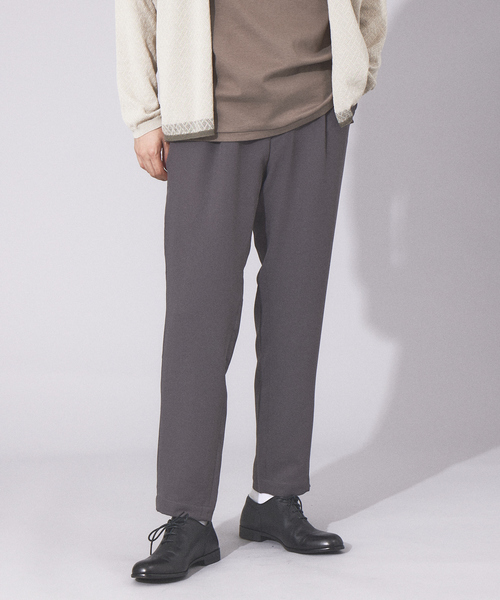 【デザイン】ややテーパードを効かせたジャージーイージーパンツ。ウエストにはゴムが入っておりベルトいらずで楽に穿いていただけます。また、ワンタック仕様なのでウエスト周りはゆったりとしつつも、足元にかけてテーパードが効いているのでスマートな印象に。【素材】ナチュラルなストレッチが効くポリエステル100%のジャージー素材。やや光沢感があるのでラフなパンツながらも綺麗な印象に。【コーディネート】カジュアル、きれいめ、モード、ストリートなど系統問わずご着用いただけます。スタンダードなデザインのパンツなので、合わせるトップスも選びません。Tシャツやバンドカラーシャツ、ポロシャツなど合わせて大人カジュアルに。にオーバーサイズのものを合わせてストリートモードスタイルに。秋冬はアウターのボリュームも気にせずご着用いただけます。【商品のお気に入り登録】再入荷、残り1点、セールなどの通知を受け取ることが出来ます。【ブランドのお気に入り登録】新商品がUPされたり売り切れ商品が再入荷したときなど、いち早くブランドのお得な情報を受け取ることができます。【ABAHOUSE / アバハウス】ABAHOUSEが目指す服づくりは、「ふだんを高める服」です。清潔感あふれるデザインと機能性を兼ね備え、どんな時も遊び心を忘れない。そんな一着で、着るひとをより洗練された毎日へと導いていく。私たちはこれからも、長きにわたって愛していただける服の数々をご提案しつづけます。