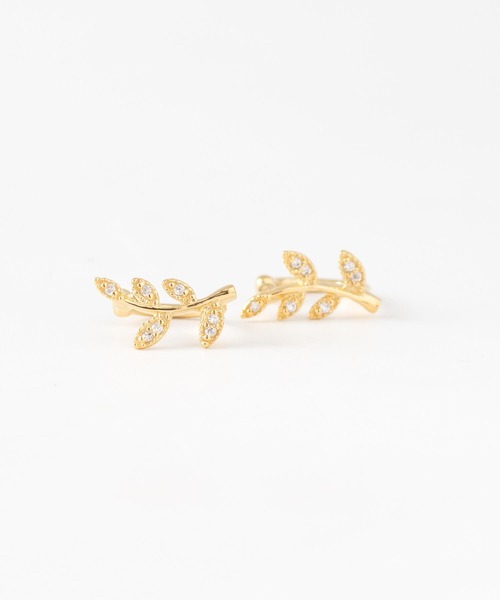 リーフデザインのカフイヤリングです。 風に靡くような涼しげなフォルムを描き、葉の表面に ジルコニアを爪留めしています。 金属の爪とジルコニアのバランスが輝きを引き立てつつ、 耳たぶに寄り添う華奢なサイズで上品な雰囲気を作ります。 ループタイプでイヤリングとしてもイヤーカフとしても アレンジができ、耳たぶからずらした位置でセカンドピアスの ように着けるのもおすすめです。 ゴールド、シルバーの2色展開です。 ※ご自身の耳たぶに合わせてサイズを調整することが出来ます。 ご自身の耳たぶに対し少しきつめに閉め、耳の付け根のほうから 耳たぶへスライドさせ着用下さい。 ※加工上、細かい傷や気泡が見られる場合がございます。 予めご了承ください。