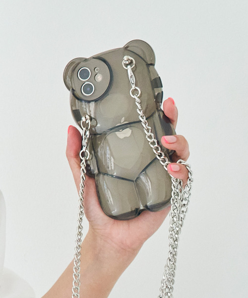 〈macaroni edge/マカロニエッジ〉クマのダイカットクリアチェーン付きiPhoneケース(iphone11/12/12pro/13/13pro)