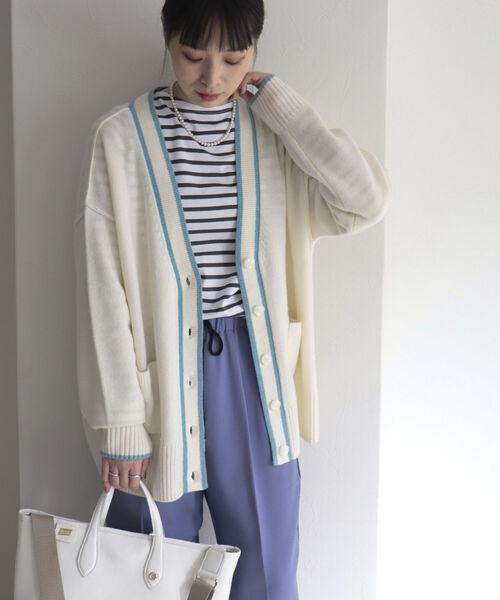 ◇fredy emue◇【2022 AW】大人気ハミルトンウール 配色ラインカーデが登場!●point・深Vネックに配色ラインが目を引く主役ニット・やわらかで上質なハミルトンウールニットは一度着るとやみつきになります・ざっくり羽織れる程よいオーバーシルエット・シンプルなデニムに合わせるだけで大人カジュアルに着こなせるカーディガンです・同素材でプルオーバーのご用意もございます(2-0021-6-22-001 HAMILTON袖タックプルオーバーニット)オーストラリアの広大な草原が生んだ最高級素材「HAMILTON LAMBS WOOL(ハミルトンラムウール)」を使用したニット。毛足が長くふんわりとした軽い着心地と、高級感溢れるしっとりとした質感が特徴です!通常のウールと比較してもチクチクが少なく、ストレスのない着心地です。発色の良さもポイントです!透け感:なし裏地:なし伸縮性:あり光沢感:なし生地の厚さ:やや厚手洗濯:ドライクリーニング●スタッフ着用コメント158㎝ 骨格ウェーブずっと触っていたくなるふわふわの肌触り。程良いボリューム感なので服に着られた感じになりません。162㎝ 骨格ナチュラルゆるっとドロップショルダーなので肩幅が気になりませんでした。ざっくりとキャミの上に羽織るコーデに挑戦したいです。●お取扱い上のご注意●*商品を長くご愛用していただきたいため、アテンションタグを必ずご確認の上、着用又はお取り扱い下さい。*店頭及び屋外での撮影画像は、光の当たり具合で色味が違って見える場合があります。商品の色味は、スタジオ撮影の画像をご参照下さい。*商品画像に関しては出来る限り忠実に表示出来るよう努めておりますが、お客様がご利用のモニターの設定及び特性により、実際の商品と比較し色味に若干の誤差が生じる場合があります。*画像の商品はサンプルとなりますので実際の商品と仕様、加工、サイズが若干異なる場合がございます。◇商品のお気に入り登録◇【お気に入りに登録 ♡マークをクリック】を是非ご活用ください! 再入荷の通知や、ラスト1点の通知、セールの通知がいち早く届きます。◇ブランドのお気に入り登録◇新商品や再入荷など、いち早くブランドのお得情報が届きます。