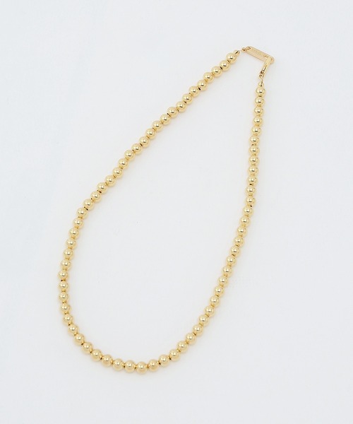 メタルボールチェーンを使用したショートネックレス【デザイン・シルエット】 トレンドのメタルパールをアジャスター無しのシンプルなショートネックレスに仕上げました。留め具のプレートはオリジナルで作成したロゴ入りのものを使用しています。 【カラー】 シルバー、ゴールド(EC別注)の2色展開 ※画像の商品はサンプルです。 実際の商品と仕様、加工、サイズが異なる場合がございます。 ※撮影場所やライティング、お使いのモニター環境によって色の見え方が異なる場合がございます。 ※商品のカラーは画像の色味をご参照ください。動画は仕様説明のため、色味が実物と異なる場合がございます。
