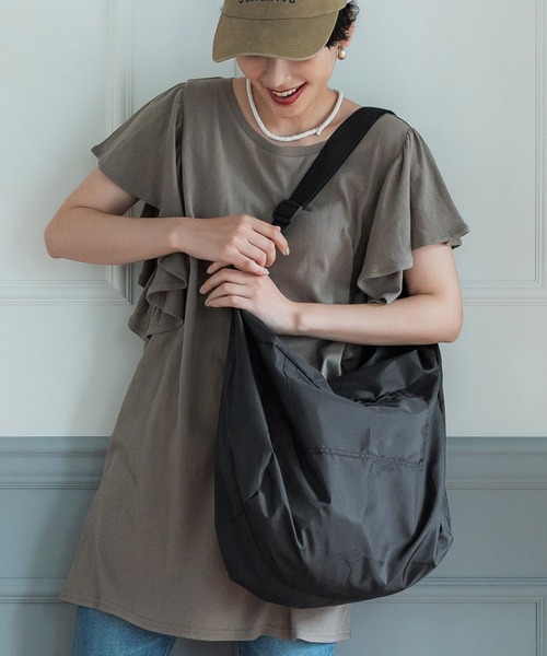 リップストップ素材がこなれて見えるショルダーバック 外ポケット付きで細かい収納が可能◎ 軽くて丈夫な素材なので、ママバックやデイリー使いにもピッタリ 伸縮性:なし 透け感:なし 裏地:なし ポケット:あり 生地感:光沢感のあるポリエステル生地 注意点:金具部分に細かい傷や汚れ等ある場合あり 宅配袋での発送のため配送時に型崩れする場合あり 上記理由での返品交換不可 モデル:166cm ▼モデル着用写真は撮影環境により、多少実際のカラーと異なる場合がございます。 ▼タンブラー乾燥はお避け下さい。 ▼色落ちの恐れがありますので、他のものと分けて洗って下さい。 ▼当商品は機械による生産の過程上、『生地を織る際の糸の継ぎ目』や多少の『ほつれ』、繊維の『混紡 』、形やサイズに多少の『誤差』が生じる場合がございます。