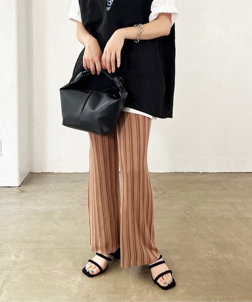 【Shelly island/シェリーアイランド】 【S/Mサイズ展開有り】 シーズンムードを高めてくれるトレンドのニットパンツ!! 《styling》 脚長効果が期待できる、クラシカルで大人っぽいストライプ柄。 シンプルなトップス合わせでもスタイリングを格上げしてくれます。 ウエストゴム仕様でストレスフリーに着用していただけます。 絶妙なカラーはデイリーに履きやすく、手抜き感のないトレンドライクなコーディネートが完成するパンツです。 《detail》 柔らかなニット素材で締め付けの感のないゆったりとした履き心地。 ウエストゴムのストレスフリーな穿き心地で、デイリーシーンに気軽に取り入れられる一枚。 リラックスした着心地ながらも、ニット素材でももたつかないシルエットにこだわり、足長効果も抜群です。 《fabric》 肌触りの良いしっとりとした、肌心地の良いサマーニット素材。 ・透け感:ややあり ・裏地:なし ・伸縮性:有り ※落ち感があるニット素材のため、サイズの変動が生じる場合がございます。 ・生地の厚さ:やや薄手 ・生地が薄いので気になる方は淡い色のインナーパンツやペチコートパンツを着用していただくようお願いします。 ※詳しいお手入れ方法は商品タグをご参照ください。 【商品のお気に入り登録】 完売カラーの再入荷通知やラスト1点の通知 プライスダウンの通知も受け取ることができます。 ぜひご登録ください◎ 【ブランドのお気に入り登録】 新商品や再入荷など、 ブランドの情報をいち早くお知らせします! ぜひご登録ください◎ ※ニット製品のお洗濯・お取り扱いにつきまして。 ニット製品のお洗濯はネットに入れ手洗い後必ず「平干し」にてお取り扱い下さい。 ニット製品の性質上、ハンガーに吊っての吊り干しをしますと伸びる原因となります。 また保管の際もハンガーに吊っての保管は伸びる原因になります為、お避け下さい。 お洗濯、お取り扱いの際は上記点に十分にご注意ください。 ※この商品は、摩擦や、汗・雨などによる水ぬれにより色落ちが生じる場合がございます。 衣服や周囲のものに色移りする恐れがありますので、白色や淡色のものと組み合わせる際は、十分にご注意ください。 ※撮影環境により多少実際のカラーと異なる場合がございます。 ※生産時期により若干の色ブレやサイズの変動が生じる場合がございます。 ※表示のサイズ感と実物は異なる場合もございます。 上記ご了承の上、お買い求め下さいませ。