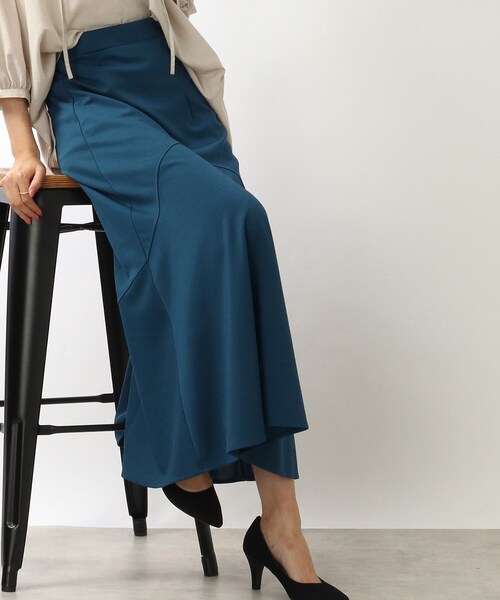 ----------------------------------------------------大人レディな印象の変形切替のマーメイドスカート----------------------------------------------------■デザインヒップもタイト過ぎず履きやすいマーメイドシルエットのスカートになっています。ジャージ素材で楽に穿いて頂けるのもポイント。※ポケットなし■スタイリングTシャツやブラウスなどお手持ちのアイテムにプラスするだけでコーディネートをおしゃれにワンランクアップでこなれ感のある印象に◎カジュアルからきれいめまで様々なテイストのアイテムと合わせていただけます。■生地詳細伸縮性に富んださらっとした肌触りのポリエステル混生地を使用しています。※裏地なし透け感:なし伸縮性:あり生地の厚み:普通裏地:なしモデル情報:身長168cm B78 W58 H84 着用サイズ:02(M)店舗へのお問い合わせ商品番号:741-75004●製品寸法:02(M):W60~70cm H78cm 総丈94cm03(L):W62~72cm H80cm 総丈96cm備考: