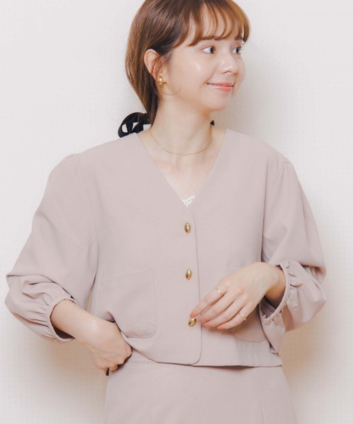 ニュアンスカラーが大人かわいい、ノーカラージャケット♪スカートからパンツまで何にでも合わせやすいコンパクトなサイズ感で幅広い体型の方に着用いただけます。きちんと感のあるすべらかな素材にパフ袖のディティールを入れてキレイめになりすぎない抜け感のある印象に仕上げました。フロントのゴールドのボタンはflowerらしい遊び心トレンドライクな雰囲気に♪デイリー使いはもちろん、オフィスカジュアル、お食事会、セットアップコーデでラフなパーティーなどにも◎★セットアップもおすすめ★同じシリーズでsmoky taperd pants/smoky mermaid skirtのご用意もございます。セットアップでの着こなしもお楽しみいただけます。【お買い物を上手にお楽しみいただくためのPOINT2つ】◎ 購入ボタン横の ♡ (ハートマーク)をクリック! 完売カラーの再入荷通知、残り1点の通知、セールの通知を受け取れます。 (クリックまたはタップで商品のお気に入り登録♪)◎ ショップのトップページにある ♡ (ハートマーク)「お気に入りショップに追加」をクリック! 新商品や再入荷等、いち早くブランドのお得な情報を受け取れます。 (ブランドのお気に入り登録♪)