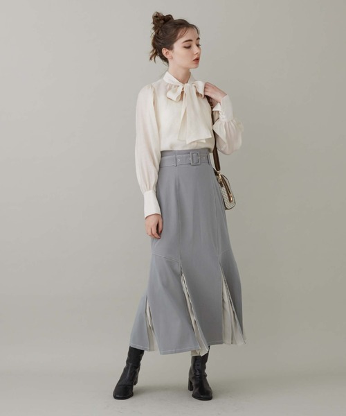 ■マーメイドで一気にレディーに■ 人気のマーメイドスカートが秋にも登場♪ ボリュームが出るプリーツはふんわりとした動きをプラス。 腰回りはスッキリとタイトなシルエット。 付属のベルトがあるのでコーディネートによって雰囲気を変えて頂けます。 配色ステッチもワンポイントに◎ 裾にボリュームが出るのでトップスをインしたスタイリングがおススメ♪ ーーーーーーーーーーーーーーー 透け感:なし 裏地:あり 伸縮性:ウエスト後ろゴム 光沢感:なし 生地厚さ:普通 洗濯方法:手洗い可 ※詳しいお手入れ方法は商品についているタグをご覧ください ーーーーーーーーーーーーーーー ※ご利用のモニター環境により、実際の色味と多少異なる場合がございます。 … information … 欲しいitemをお気に入り登録(♡マークをclick) ・お買いのがし対策…完売itemの再入荷やラスト1点の情報をお知らせ ・欲しいitemをお得にget…price downになったらいち早くお知らせ ・スムーズ検索…ZOZOのお気に入りアイテムページで簡単checkできるから、再検索不要♪