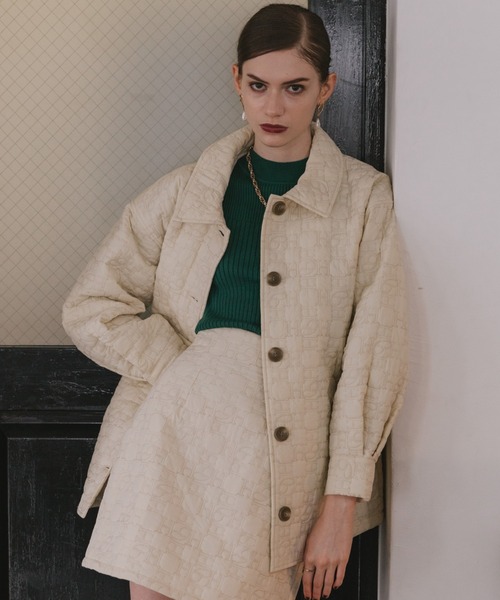 Cheekオリジナルのキルティング生地同生地のミニスカートとセットアップでも着られるアイテム*■point・Cheekオリジナルのキルティング生地・抜け感のあるオーバーサイズ・同生地のスカートとセットアップでも◎■detail秋冬定番人気のキルティング生地を使用したジャケット。「Cheek」のCHをあしらったオリジナルのキルティング生地で、さりげないモノグラム柄がおしゃれ見えなアイテムです*ゆるめなシルエットが抜け感を与えるオーバーサイズ。抜いて着た時に膨張感が出ないよう、襟の大きさや袖のボリューム感にこだわりました。やわらかな色味が女性らしさを引き立てるアイボリー・ブラウン・ピンクベージュの3色展開。■coordinateインナーにハイネックのリブニットなどを合わせると大人かわいい着こなしに♪3色ともやわらかな色味なので、ビビットなカラーを合わせてアクセントするのもおすすめです◎同生地のミニスカートとセットアップで着こなすのも魅力的です!→225-570-214-001■素材素材:【表側】ナイロン 100%【裏側】ポリエステル 100%【中綿】ポリエステル 100%**********透け感…なし裏地…あり伸縮性…なし光沢感…なし生地の厚さ…厚い**********※画像の商品はサンプルです。実際の商品とは仕様・加工・サイズ・素材が若干異なる場合がございます。※生産の都合により納期は変更となる場合がございます。※撮影場所やお使いのモニター環境により若干お色味が異なる場合がございます。■商品のお気に入り登録■ラスト1点の通知やセール通知、また完売していても再入荷時に再入荷通知を受け取ることができますので、是非ご登録ください♪■ブランドのお気に入り登録■新商品や再入荷など、お得な情報を受け取ることができます!ぜひご活用ください!