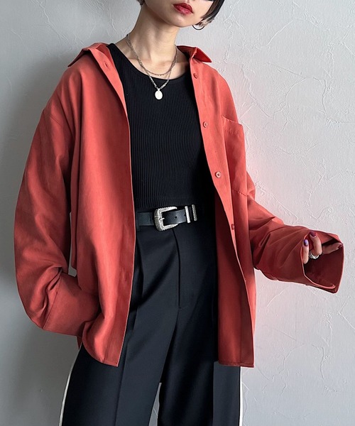 ◆ももの皮のような表面感のルーズシャツ◆ ももの皮表面の様なつるっとした肌触りが特徴のツイル素材を使用。 少し起毛感があり、秋冬らしい雰囲気を演出してくれます。 メンズシャツの形がベースになっているので、ゆるっとしたルーズなサイズ感。 下に向けてワイドになる袖がポイント◎よりこなれ感がUPします。 ビッグシルエットで羽織るだけでこなれ感のある雰囲気に仕上がり、肩掛けなどコーデのアクセントとしても使える万能アイテムになります。 タートルインナーとレイヤードスタイルもオススメです! 〈注意事項〉 ・ボタンは全色生地同色です。 ・サンプルにて撮影をしておりますので、実際の商品とは素材や仕様・加工・サイズ等が若干異なる場合がございます。 ・モニター・環境等により実際の商品と色味が多少異なって表示される場合がございます。予めご了承をお願いいたします。 ・撮影環境により、光の当たり具合で色味が違って見える場合があります。あらかじめご了承下さい。 ▼気になるアイテムは《お気に入り登録》がおすすめです! 完売カラーの再入荷情報、セール情報、ラスト1点の通知を受け取ることができます! ▼《ブランドのお気に入り登録》で新商品や再入荷などのお得な情報をいち早くお知らせします。