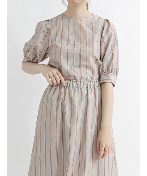 全体にあしらわれたマルチストライプが爽やかな印象を与えるブラウス。 ふんわりと膨らむボリューム袖が、ガーリーで可愛らしい雰囲気に。 袖口やバックには金釦があしらわれ、コーディネートのアクセントになります。 同じ柄のスカートとセットアップで着用いただけるアイテムです。 ※商品画像は、撮影環境やお客様のご利用のPC・スマートフォンのモニター環境などにより実物と色味に差異がある場合がございます。