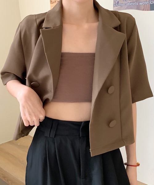 トレンドの半袖ジャケット。 インナーにセットのシンプルチューブトップを合わせるだけでこなれた印象に♡ セットで着こなすことで、こなれ感のある高感度なスタイルが完成します。 メンズライクな少し長めの半袖が大人っぽい印象。 短め丈でフェミニンさをプラス。 ※店頭及び屋外での撮影画像は、光の当たり具合で色味が違って見える場合があります。またご覧いただきますモニターや使用環境により実際の商品と多少色味が異なって表示される場合がございます。予めご了承をお願いいたします。★商品のお気に入り登録→【カートに入れる】右側の♡をクリック完売カラーの再入荷通知や、ラスト1点の通知、セールの通知も受け取ることができます。★ブランドのお気に入り登録→ブランドタグのページからお気に入りをクリック新作商品や再入荷などブランドのお得な情報を受け取ることができます。※ご注文いただいた予約商品のお届け時期の確認は、注文履歴ページより行えます。※他のキャンペーンにより、期間中に価格が変動する場合がございます。※セールは予告なく終了させていただく場合がございます。※他のキャンペーンにより、期間中に価格が変動する場合があります。※セールは予告なく終了させていただく場合もあります。