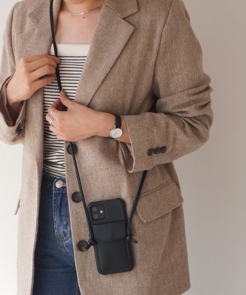 【 ammy. / エイミードット 】 PU レザー ポケット ショルダーコード 付き iPhoneケース iPhoneカバー / 11 , 11pro , 12 , 12pro , 12mini 13 , 13pro , 14 , 14pro 対応