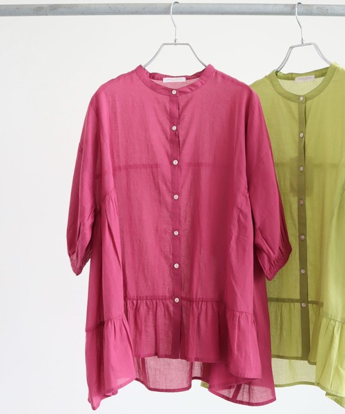 ボリューム感のあるティアードデザインが、フェミニンな印象を与えてくれるチュニック前後で丈感が異なり、後ろが長めの仕様になっているので、気になるヒップラインをカバーしてくれます。薄くて柔らかなコットンボイル生地により、ノンストレスでの着用が可能◎細身のパンツと合わせて着用するのがおすすめです。【素材】透け感[やや有り]裏地[無し]伸縮性[無し]光沢感[無し]生地の厚さ[薄手]付属品[無し]ポケット[無し]【STAFF着用レビュー】・身長161㎝ / サイズ FREE身幅に余裕のあるゆったりしたシルエット◎シンプルなボトムスと合わせることでメリハリのある大人なスタイルも狙えます。・身長151㎝ / サイズ FREE薄手の綿素材でサラッとしていて着心地◎7部袖なので小柄な方でもバランスよく着られるのでおすすめです!● Green Parks ●(グリーン パークス)20以上の人気ブランドを取り扱うアパレルセレクトショップ。ベーシックながらもさりげなくトレンドを取り入れたオリジナルブランドchocol raffine robeも展開。▼ 商品のお気に入り登録がおすすめです ▼商品ページ内のハートマークをクリック。完売時の再入荷や、最後の1点の通知、コーディネート画像がアップされたとき、お得なお値下げの際の通知を受ける事ができます。【お知らせ】ページでも通知が確認できます。