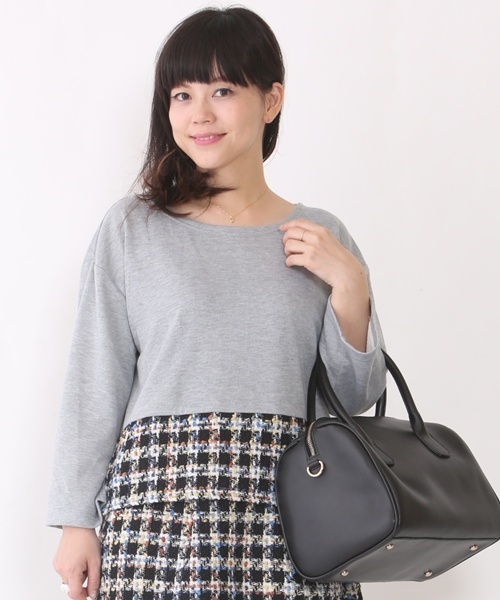 mystic(ミスティック) カジュアルな裏毛素材に、上品な印象のツイードをプラスしたプルオーバー。大人カジュアルに着こなせます。鮮やかなカラーがポイントになるので、冬のシックなコーディネイトに栄えます。
