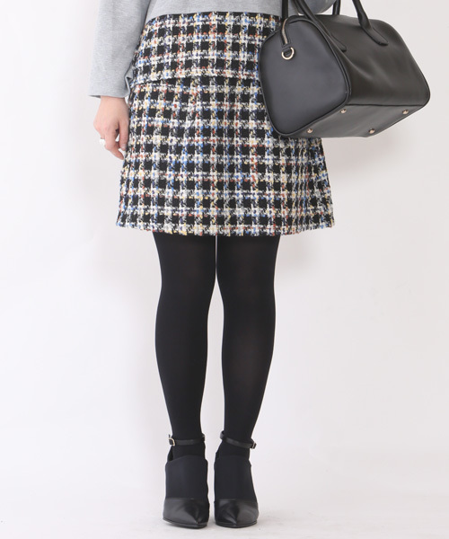 mystic(ミスティック) カラフルなツイード素材が印象的なタイトスカート。 シックにもカジュアルにも合わせて頂けます。同素材のトップスとのセットアップコーデもお勧め!