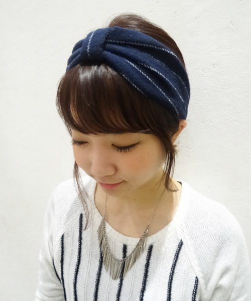■スタイリングのポイントになるストライプヘアバンド■ ヘアバンドを一つ加えるだけで雰囲気がグッと変わる1枚。 落ち着いたカラーと素材感が冬らしいイメージに。 さりげないストライプが、冬のスタイリングをグッと深めます。