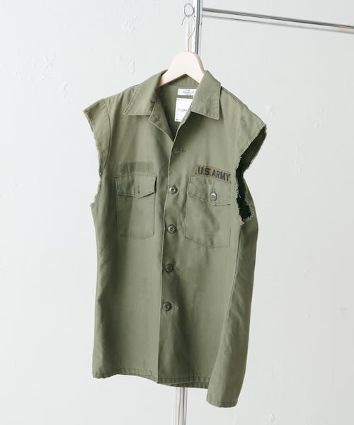 ★COLLAGE GALLARDAGALANTE SELECT●1点ものの古着を使用してリメイクしたミリタリーベスト。●1点1点リメイクしているので、ここでしか手に入らないひと品。●羽織るだけでサマになるので、今から秋に向けてレイヤードが楽しめます。●デニムなどラフなコーデに取り入れるのはもちろん、スカートやキャミワンピースに合わせたスタイリングもおすすめです。※1点1点風合いが異なる場合がございます。傷・汚れがあるアイテムもございますので予めご了承ください。vintagelp