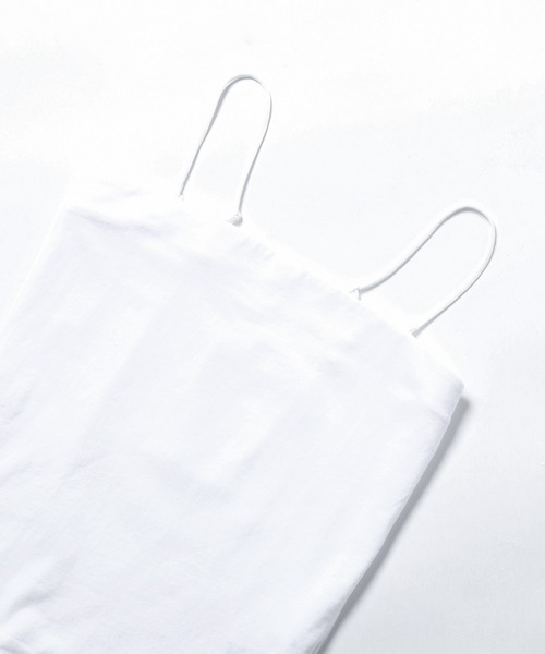【素材】 毛羽立ちが少なくキックバックの良い綿ベア天竺を使用しています。 【デザイン・シルエット】 胸元をすっきりとさせたシンプルなキャミソール。ストラップは取り外し可能で、ベアトップとしても着用できます。 【カラー】 何にでも合わせやすいベーシックなカラー展開 【おすすめのスタイリング】 シアーなニットやブラウスのインナーして。 ---------------------------- 透け感:白はあり 裏地:なし 伸縮性:あり 光沢感:なし 生地の厚さ:薄手 ポケット:なし 洗濯方法:手洗い可能 ---------------------------- 【モデル情報】 ※画像の商品はサンプルです。 実際の商品と仕様、加工、サイズが異なる場合がございます。 ※撮影場所やライティング、お使いのモニター環境によって色の見え方が異なる場合がございます。 ※商品のカラーは画像の色味をご参照ください。動画は仕様説明のため、色味が実物と異なる場合がございます。