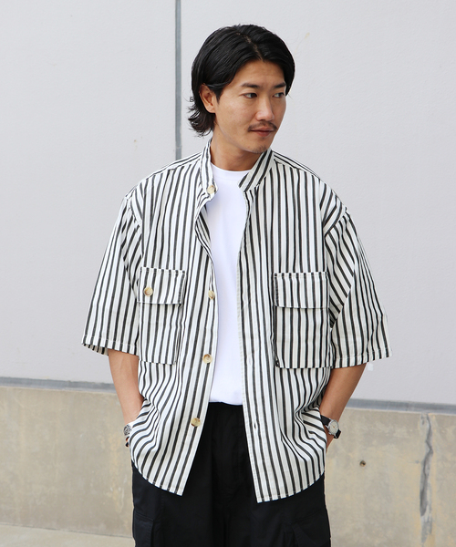 トレンドのワッシャー加工を施したスタンドカラーシャツ。ワークのディテールながらさわやかなストライプでクリーンなイメージに。オーバーサイズで羽織りやすいサイズ感です。**********************裏地:なし伸縮性:なし光沢感:なし生地の厚さ:普通**********************※取り扱いについては、商品についている品質表示でご確認ください。