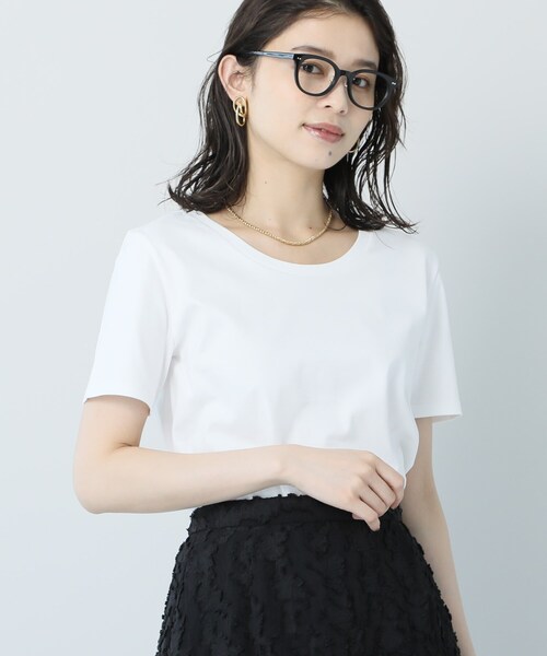 【デザイン】 コンパクトシルエットのカットソーTシャツです。 汎用性のあるシンプルなデザインなので一枚でも、スーツのインナーとしてもお使いいただけます。 つるりとした表面感が上品でグレード感がある大人の為のTシャツです。 【生地感】 肌馴染みの良いコットン(綿)素材を使用。 素材には、抗菌防臭効果のある『ポリジン加工』を施しており、更に気温が高い時期に嬉しい接触冷感、UVカット機能付きです。 マシンウォッシャブルでのお手入れも可能です。 ※『ポリジン』スウェーデン生まれの抗菌防臭のリーディングブランドです。 銀イオンの力で、ニオイの原因となるバクテリアの増殖を防ぎます。 また、部屋干し臭も防ぎ、洗濯を繰り返しても衰えにくい効果で、いつも快適で清潔にお過ごしいただけます。 ※この製品は、太陽光線中の紫外線(UV)を通しにくくします。この効果は永久的ではありません。 【着こなしポイント】 スーツのインナーとしても、トレンドのボトム合わせでも様々なコーディネートに活躍する一枚です。 モデル情報:身長161cm B79 W58 H86 着用サイズ:02(M) 店舗へのお問い合わせ商品番号:153-11003 ●製品寸法: 01(S):着丈59cm B88cm 袖丈19cm 肩幅37cm 02(M):着丈60cm B92cm 袖丈19cm 肩幅38cm 03(L):着丈61cm B95cm 袖丈20cm 肩幅39cm 04(2LT):着丈62cm B98cm 袖丈20cm 肩幅40cm 44(3L):着丈62cm B106cm 袖丈21cm 肩幅41cm 48(5L):着丈64cm B114cm 袖丈22cm 肩幅42cm 備考: