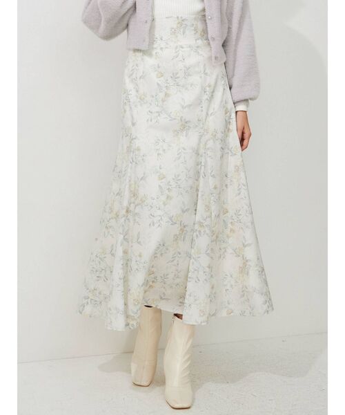 女性らしい色合いのオリジナルプリントが映える一枚。繊細なモノトーンの線画と、スプレーインクのような柔らかいタッチで柄を描き起こし、更に同じ柄を影のように重ね合わせたこだわりのプリントです。生地はほんの少しツヤ感があり、大人っぽく上品な印象に仕上げました。薄すぎず重たくない素材が、シルエットを美しくキープしつつも、ボディラインを拾いすぎない絶妙なバランスです。ウエストをしっかり立ち上げた、コルセットのようなハイウエストがスタイルアップ効果抜群。バックシャーリングなのも着心地を考えたポイントです。【スタイリング】ニットやシャツブラウス、カジュアルなカットソーまで幅広い着こなしが楽しめるので、オールシーズン活躍すること間違いなしです。