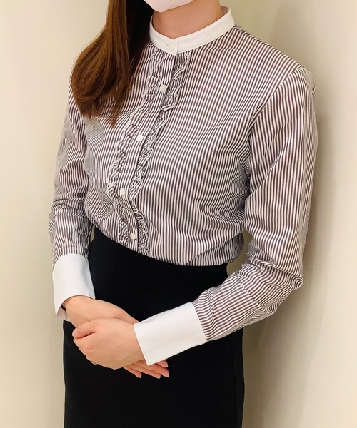 キリっとしたロンドンストライプ柄&クレリックデザインに、ミニフリルで程よい柔らかさをプラスした一枚。ダーク系のパンツに合わせて大人っぽくまとめるのがおすすめ。【衿型】クレリック スタンド衿【仕様】カフリンクス使用不可ツインバレル・イッテコイ仕様前身頃・後身頃:ダーツなし前立:ミニフリル仕様【BRICK HOUSE by Tokyo Shirts / ブリックハウス バイ トウキョウシャツ】業界トップ水準を誇るノーアイロンの形態安定加工は自宅で洗濯可能でお手入れ簡単!高度な縫製技術を用いた高付加価値シャツでありながら選ぶことを気軽に楽しめます。ベーシックから多様なデザインまで幅広いバリエーションで豊富なサイズ展開で、ディテールの隅々にまで織り込んで一枚一枚丁寧に仕立てられたシャツです。
