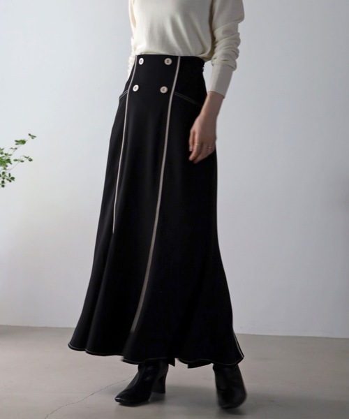 《スタイリング》 タートルネックやクロップド丈の丈のニットで合わせたフェミニンコーデと相性抜群* 足元はブーツやパンプスでコンパクトにまとめるのがおすすめです。 オールシーズン着用できるのも嬉しいポイント* 《ディティール&生地感》 落ち感のある生地を使用しており、動くたびに綺麗なフレアラインを演出します。 配色パイピングが縦のラインを強調し、スタイルアップ効果も抜群です。 後ろウエストゴムなので着脱と着心地が楽なのも嬉しいポイント◎