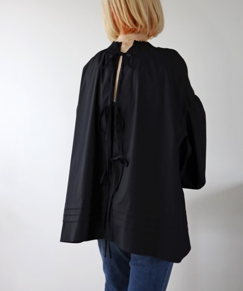 《スタイリング》 細めのパンツでカジュアルに、タイトスカートなどを合わせたフェミニンコーデもおすすめです。 トップのボリュームを活かしてボトムスをコンパクトにする事で、全身のバランスがとりやすくなります◎ 《ディティール&生地感》 襟ぐりと袖口に施されたシャーリング、ふんわりボリューミーな袖がポイントのブラウス。 細かいタックデザインとバックリボンが洗練された大人なイメージをプラスします。 ハリのある綿混の生地を使用しております。 -------------------------------------------------------------------------------------------------------------- 【Information】 ◆《お気に入り登録》がオススメ◆ ・「商品のお気に入り登録」で再入荷通知や、ラストの通知、セール通知も受け取ることが出来ます。 ・「ブランドのお気に入り登録」で新商品や再入荷など、お得な情報を受け取ることが出来ます。 ※自然光での撮影を行っているため、PCやスマートフォンの環境により写真の色味が実際の商品と異なって見える場合がございます。ご了承の上お買い求め下さいませ。※サイト上のカラー名と、お届け商品に記載されているカラー名が異なる場合がございます。 --------------------------------------------------------------------------------------------------------------