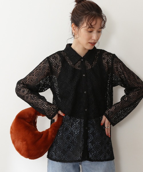 レトロな雰囲気のレース模様が映えるシャツ。スクエアに切り替えたレース生地が甘すぎないポイント。肌離れしたシルエットでゆったりとした羽織り心地です。お手持ちのインナーと合わせていただき、透け感をいかしたシャツスタイルや羽織りとしても着回しできるアイテムです。**********************透け感:あり裏地:なし伸縮性:ややあり光沢感:なし生地の厚さ:普通**********************