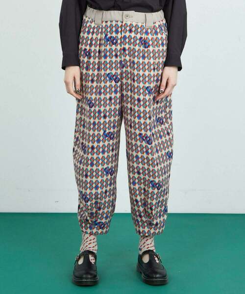 優しい肌触りで上品な光沢感が特徴の生地にヴィンテージドレスからインスピレーションを受けた幾何学模様はブロック調の配色の中に、モノグラムのロゴが隠されています。 そんな素材を使ったデザインパンツ。フロントは立体感のあるボックスタックで膨らみ感を出し、ヒップから太ももにかけてはユトリが有りながらも裾に向かってゆるやかなテーパードにする事でスッキリとした印象に仕上げています。 裾口にはタックを取り、ニュアンスを付け程よいヌケ感も演出しています。 ウエストにはゴムとヒモが入っているイージー仕様な点も嬉しいポイントです。あえて大きめのサイズでルーズに着用しても可愛いです。 *こちらの商品はユニセックス商品です。 【ブランド情報】 FRAPBOIS/フラボア 2001年にブランドスタート。 「大人げない大人の服」をコンセプトに、大人が着るリラックスしたデイリーウェアを提案するコレクションブランド。 レディースとメンズのアイテムをご用意しています。 ---------------------------------------------------------------------- 【お気に入り登録】がおすすめです。 ■商品のお気に入り登録 再入荷、残り1点、セールなどの通知を受け取ることができます。 →商品ページ ♡ をクリック ■ショップのお気に入り登録 新商品や再入荷、セール、クーポン配布、ショップニュースなど、いち早くショップの情報を受け取ることができます。 →「♡お気に入りショップに追加」 をクリック ----------------------------------------------------------------------