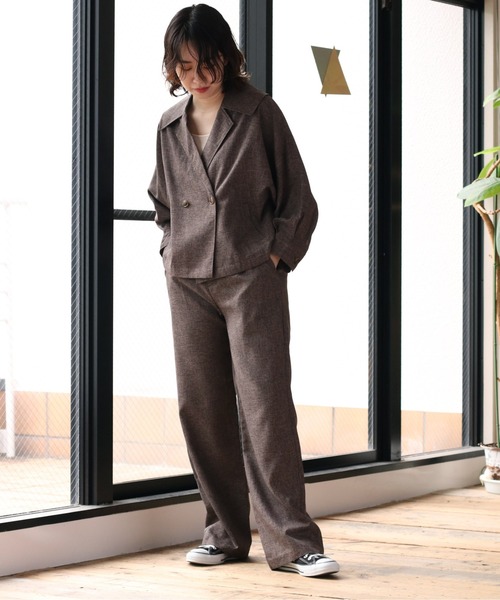 ツイード風生地が秋らしい、さらっとした生地感のパンツ◇Point◇シックな色合いが秋っぽ見えする、ツイードライクなストレートシルエットのスラックスです。さらりとリラックス感のあるつくりで、今の気分にぴったりなアイテム。◇Material◇肌当たりがさらりとした生地感です。ご自宅での手洗いが可能。落ち着いたトーンのブラウン・グレーの2色でご用意しました。◇Coordinate◇夏の間はTシャツ合わせや、キャミやタンクトップを中に着てシャツを羽織るのがおすすめ!涼しくなってきたら、同素材の「CCE-0850 ツイードライクテーラージャケット」と合わせてセットアップで着用するのも素敵です。※照明や天候により実際の色味と異なって見える場合がございます。ご了承くださいませ。