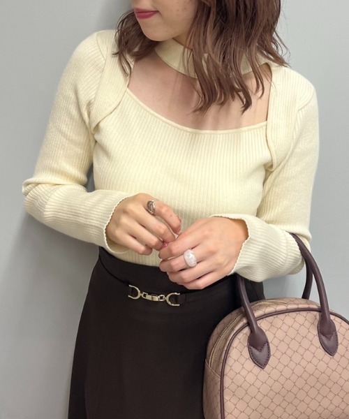 チョーカーネックがアクセントの前後2WAYトップス ■デザイン ・トレンドの肌見せがポイントのレディライクなニット。 ・チョーカーのようなデザインが目を惹き、デコルテを綺麗に見せてくれます。 ・羽織りを着ても首元が寂しくならずコーデのワンポイントに。 ・前後2WAYで着用できるので背中開きとしても◎ ■カラー ・オフホワイト/サックス/グレー/ブラックの4色展開 ■スタイリング ・トレンドのミニボトムと相性抜群。シンプルなボトムスでも簡単にコーデが決まります。 ・大人っぽく着こなすなら、マーメイドスカートやスリットスカートなどロング丈のスカートがおすすめ。 ・背中開きで着てキャミワンピースにレイヤードしても◎ ・足元はボリュームのある厚底シューズがマストです。 スタッフコメント 153cm:骨格ウェーブ デコルテが綺麗にみえるデザインで、 骨格ウェーブさんはハイウエストのボトムスと合わせると 腰位置を高く見せられてスタイルアップ効果も◎ 155cm:骨格ストレート スッキリ細見えが叶うリブニット◎ ダブルフロントで着れるので 着回しによって雰囲気を変えられるのも嬉しいポイント! 骨格ストレートさんはラップスカートなど ワンポイントあるボトムと合わせるのがおすすめ◎ 166cm:骨格ウェーブ デコルテをきれいに見せてくれ、 チョーカーネックがアクセントになるので首元が寂しくなりません。 骨格ウェーブさんはフレアスカートで合わせると女性らしく着こなせます。 ■point カットアウトトップス、マルチウェイ、ニット、韓国ファッション、Y2K、プチプラ、着まわし、着回し、カジュアル、ガーリー、大学生コーデ、通勤通学、ベーシックカラー、カラーアイテム、秋服、秋コーデ、韓国コーデ、肌見せ ----------------------------- 裏地:なし 光沢感:なし 透け感:なし 伸縮性:あり ----------------------------- model:162cm/166cm ※着用、お取り扱いの際は、商品についている品質表示とアテンションタグを必ずご確認下さい。 ※ご覧のモニター環境や撮影環境により実際の商品と多少色味が異なって見える場合がございます。 ご理解の程よろしくお願いいたします。 ※引っかけ注意 ・粗い組織のものや、表面に凹凸があってルーズな組織のもの 表面に糸が浮き出ているものは、ちょっとした不注意から引っかけてしまいがちです。 取り扱いの際は取り扱い絵表示確認の上、十分注意してください。 ・着用時にベルトや、バックや周囲の壁など表面の粗いものとの摩擦や引っかかりに注意してください。 ・水洗いやクリーニングの際にも他の物ものとの引っかかりに注意して下さい。 ■お気に入り登録のおすすめ【気になるアイテムを登録】ハートをクリックしてお気に入りに登録すると完売カラーの再入荷やラスト1点の通知、セールの通知を受けとることができます。 【ブランドを登録】新商品や再入荷、セール通知など、いち早くブランドの情報を受けとることができます。