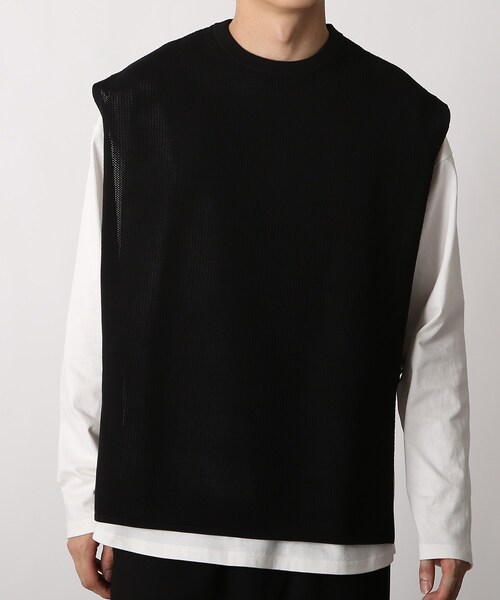 ■Point/Detail ベストとインナーがロングスリーブTシャツのアンサンブルセットアイテム。 インナーの裾が出るように設計したアンサンブルアイテムです。 サイドが空いた斬新なデザインのベストで、ストラップでシルエットが変えられる2WAY仕様です。 ■Fabric ベストはポリエステル100%の軽い糸を使用し、ニットならではのふっくらとした風合いと軽やかな着心地が特徴です。 インナーには一枚でも着用が可能なしっかりとした厚みに拘ったコットン素材を使用。 ※こちらのセットアイテムのニットベストの商品は網目が粗いため、お手持ちのインナーを合わせて頂くのがお勧めです。 ■Coordinate コーディネートしやすいアンサンブルアイテムなので、綺麗目なパンツと合わせてモードスタイル、デニムに合わせてカジュアルに、スウェットと合わせてトレンドのストリートに。 着回しの効くアイテムです。 こちらの商品は主に秋に着用いただける商品です。 モデル情報:身長178cm B87 W70 H93 着用サイズ:03(L) 店舗へのお問い合わせ商品番号:616-15005 ●製品寸法: 02(M):ベスト着丈63cm ベスト肩幅48cm インナー着丈68cm インナーB118cm インナー袖丈55cm インナー袖幅23cm インナー袖口幅11cm インナー裄丈82cm インナー肩幅54cm 03(L):ベスト着丈66cm ベスト肩幅50cm インナー着丈71cm インナーB124cm インナー袖丈57cm インナー袖幅24cm インナー袖口幅12cm インナー裄丈85cm インナー肩幅56cm 04(LL):ベスト着丈68cm ベスト肩幅52cm インナー着丈73cm インナーB130cm インナー袖丈58cm インナー袖幅25cm インナー袖口幅12cm インナー裄丈87cm インナー肩幅58cm 備考: