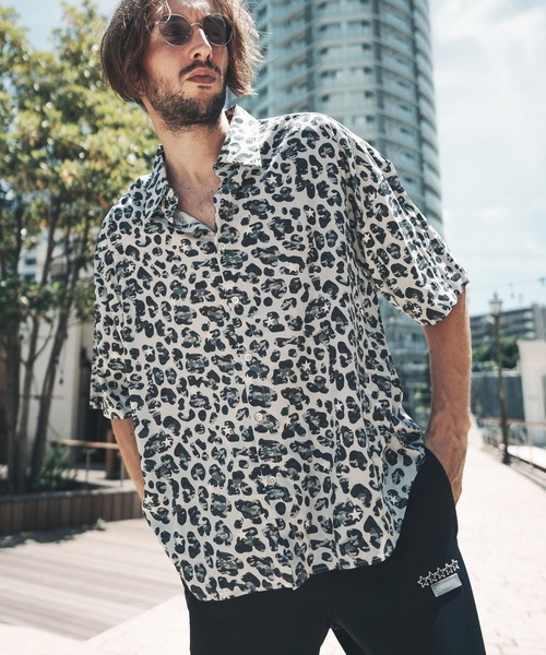 181cm B87-W70-H90のモデルがLサイズを着用。 レオパードの中にQWERTY定番のカモフラージュを忍び込ませたqwertyオリジナルの総柄カモフラージュレオパード。 所々に配したQWERTYを象徴するディテールのひとつである星柄がアクセントとなっています。 ■素材 厳選に厳選を重ね採用した高級感、ドレープ感が秀悦なレーヨン混生地を使用。 ■シルエット 上品な装いを生み出すボックススタイルのサイズ感。 肩幅・身幅・身丈ともにゆとり感のあるシルエットになっています。 ※着用画像と商品単体画像で色が異なる場合がございます。 ※商品単体画像を実物により近づけております。