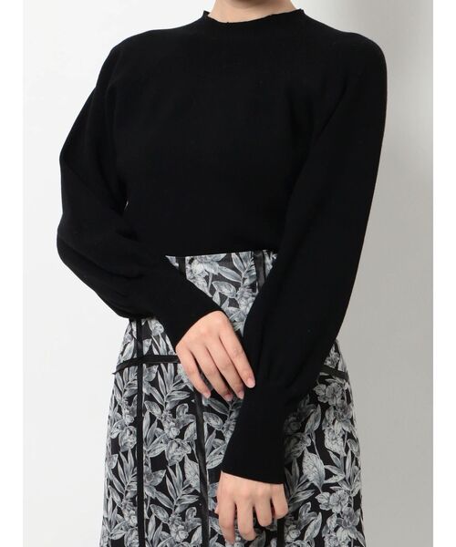 オフボディのコンパクトニットは、袖のボリューム感が可愛いシンプルニット。襟ぐりも切替えずに身頃から編み続けることですっきりとした印象になります。裾リブがキュッと入っているので、ボトムから裾を出して着てもウエスト位置が高く見え、スタイルアップして見えるトップスです。【スタイリング】コンパクトな丈感なので、ボトムはハイウエストだったり、フレアシルエットのスカート合わせがおすすめです。※着丈が2センチ短くなります。※襟ぐりはもう少し高くなり、モックネックになります。
