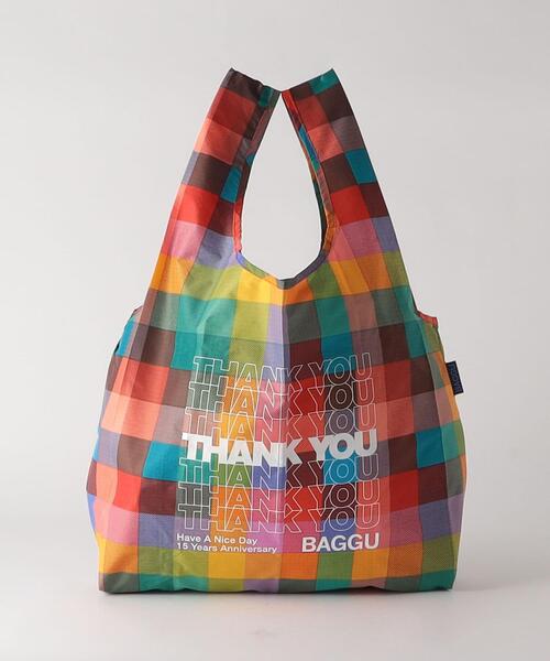 人気の<BAGGU>より、15周年記念モデルが登場!■デザイン2022年、BAGGU社設立15周年を記念して日本だけの限定モデルをリリース!アメリカのレジ袋を模した「THANK YOU」デザインです。カラフルなカラーリングとポップなモチーフが印象的なショッパー型バッグ。コンパクトに折り畳みができて、持ち歩きも便利です。大判サイズでどんな買い物にも対応が可能な大きさが使い勝手の良いアイテム。ギフトにもおすすめです。・メーカー品番/カラー:BAGGU STANDARD THANK YOU マドラス1 ホワイト マドラス3 ホワイト■同柄でBABYの展開もございます。38324991238============================ケア方法:洗濯機洗い可============================<BAGGU(バグゥ)>2007年、カリフォルニアで生まれたバッグブランド。【注意事項】※商品を使用前に、タグ等に記載されている「取り扱い上の注意書き」、「洗濯表示」を必ずご確認ください。※商品画像は、光の当たり具合やパソコンなどの閲覧環境により、実際の色味と異なって見える場合がございます。予めご了承ください。※商品の色味の目安は、商品単体の画像をご参照ください。店舗へお問い合わせの際は、全国のgreen label relaxing各店舗まで下記の品名/品番をお申し付け下さい。品名:BAGGU STANDARD/15th(2) 品番:38324991237