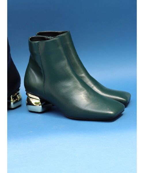 コーデにアクセントをつけてくれるデフォームヒールブーツ ヒールをゴールドにし、綺麗めからカジュアルまで幅広いスタイルにマッチするデザインです。 足がスッキリ見えるラインを考えた長さになっているのでスタイルアップ効果もあります。
