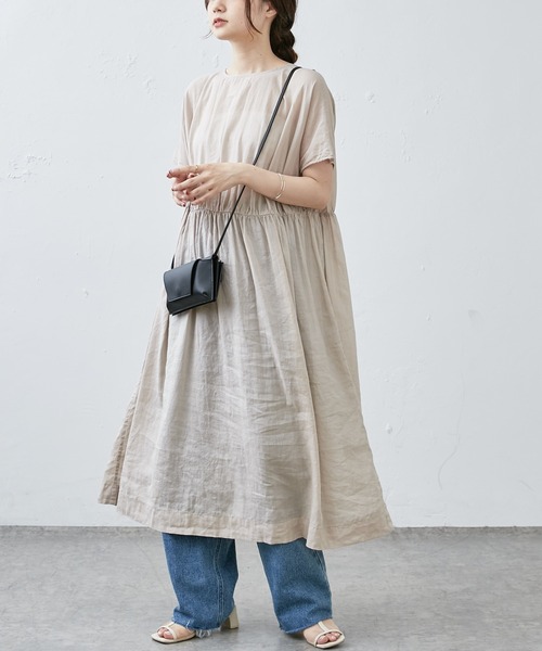 ピュアルセシン 2022 SS collection【classical fragrant】◇前後で着用できる、清涼感あるラミーワンピース◇●商品のお気に入り登録 クーポンやタイムセール、再入荷通知やラスト1点などお得な情報を受け取ることができます。ご登録をお忘れなく◎●デザイン前後着用が可能な、シアーワンピース。コットンとラミーの混合素材で、シーズンムードを高めてくれます。ウエストに寄ったギャザーから生まれるドレープは滑らかな動きを作り出し、女性らしいシルエットを演出。ボタンを全て外し、軽い羽織りとしての着用やパンツ合わせで、カジュアルダウンしたスタイリングまで、様々な着こなしをお楽しみいただける1着です。●カラー展開ライトベージュ/マスタード/チャコールグレーの3色展開●素材コットンとラミーが半々になった軽い素材感。ドライタッチで盛夏の活躍が見込めます。●スタイリングパンツを合わせたスタイリングがデイリーユースにオススメ。ロゴTやキャミインナー、タンクなどにバサッと羽織るコーディネートはシーズンライクな仕上がりに。スタンダードなライトベージュやチャコールグレー、アクセントになるマスタードまでカラーを揃えているので、是非気になる1着を見つけてみて下さいね。===============================透け感:あり裏地:なし伸縮性:なし光沢感:なし生地の厚さ:薄手【スタッフコメント】年齢:20代前半/身長:157cm/普段着用サイズ:Mサイズサイズ感:身体の泳ぐ、締め付け感のない着心地です。ゆとりがあり、通気性も◎素材感:重さを感じることなく着用できます。ラミー混じりの涼し気な1着。===============================※撮影場所やお使いのモニター環境により若干お色味が異なる場合がございます。特にロケの撮影では明るく見える傾向にございます。※予約商品はサンプルで撮影をしております。若干の仕様が変更になる場合がございますので予めご了承の上ご注文くださいますようお願いいたします。