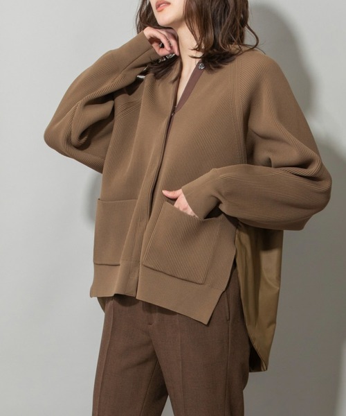 ◆きれいな目面で編み目もハッキリとしているニットにやわらかでマットな中綿入り布帛をドッキングした超軽量ニットジャケット ◆ <MATERIAL> ニット: 特殊加工により、ボリューム感と高伸縮性を加えたポリエステル素材を使用しております。 染色時にソフト加工も施しているため、柔軟性にも優れています。軽くてしわになりづらく、速乾性にも優れご家庭でお洗濯しても縮む心配がありません。ふくらみ感のある素材なので、成型柄がはっきりと立体的に表現出来る糸です。 12GGの両畦編みに編み上げ、しっかりとした編み目でほっこりとしたニットの雰囲気とボリューム感ある見た目に対して、圧倒的な軽さが特徴的です。 昨年展開し人気のあったMN212K04と同じ糸、同じ編地です。 別布: 50Dの高密度で使いやすいタフタです。 カジュアルでスポーティーな印象のタフタ素材ですが、光沢感も少なくマットな印象で大人っぽい雰囲気にこなせます。 また、40gの薄手の中綿を挟む事で、暖かみと膨らみ感、女性らしい柔らかな印象を加えています。 極力スポーティーな印象を抑える為、キルティングはせず、内側のセンターバックのみに1本ステッチを入れ、中綿のズレを防止しています。 <DESIGN> くっきりと編み目の立ったのニットブルゾンの後ろ身頃に中綿入りのタフタ素材をドッキングした、オリジナリティー溢れるアイテムです。 素材自体はどちらも軽くさらりと合わせやすいのですが、ドッキングする事によりアウター的な要素が加わり、都会的にもアウトドア的な雰囲気にもコーディネート次第で、着こなしの雰囲気を変えられる、ただのニットブルゾンとは違う他にないMunichらしいアイテムに仕上げています。 張りのある素材感ですが、幅広に見えない様サイズ感には拘りました。 後ろ裾はラウンドヘムで脇にスリットを入れる事で軽さと動きを出し、より軽さのある後ろ身頃にボリューム感を出しシルエットにメリハリを付けています。 前立てにヘリンボンテープを付け手付けスナップにする事で、デザイン性を加えると共にボタンを全て閉じて着用した時にプルオーバーの様な着こなしも楽しめます。 ボディーと同じ両畦で編み立てたパッチポケットも中リンキングしてすっきりと、デザインのポイントになっています。 <COLOR> ■アイボリー:ニット部分はほんのり黄味のあるやさしいアイボリー、後ろ身頃のタフタはオートミールのような淡いカラー。奥行きのあるホワイトカラーの組み合わせです。 ■ブラック:シックなブラックの組み合わせ。深めのブラックのニット部分と大人っぽい光沢のあるタフタ素材のコントラストがより楽しめる一枚です。 ■モカ:こっくりとしたモカブラウンのニットにキャメルがかった明るいブラウンのタフタの組み合わせ。合わせるだけで秋冬らしいニュアンスに。 ※光のあたり具合いやパソコンなどのモニター環境によって実際の色味と異なって見える場合がございます。予めご了承ください。 ※着用商品はサンプルです。サイズ等の仕様に若干の変更がある場合がございますので、予めご了承ください。 *お取扱いについては、商品についております品質表示、アテンションタグにてご確認ください。 洗濯:手洗い可 .............................≪INFORMATION ≫............................ ▼商品のお気に入り登録▼ 『♡』マークを押してお気に入り登録して頂いた商品は、セール開催の通知やクーポン発行などのキャンペーンなど、お得な情報をいち早く受けとる事が出来ますので、ぜひご登録ください。
