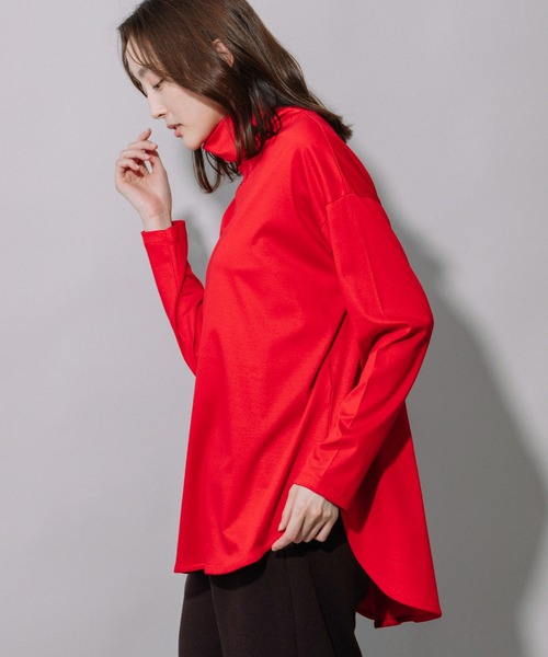 ◆ナチュラルな光沢と程よい肉感が大人っぽい印象の着回しの効くタートルネックプルオーバー◆<MATERIAL>キレイ目で落ち感のあるセルロースにコットンのナチュラル感がバランス良く加わり、スムース編みにする事で適度にハリ感のある使い易い素材感に仕上げています。落ち過ぎずハリ過ぎずな程良い肉感のキレイ目なカットソーです。撚糸にこだわった糸の持つサラッと感、上品なドレープとマットな美しい光沢感が特徴です。この素材に使用しているセルロース繊維は「ecoito」と言う素材で、持続可能な社会への貢献へ取り組む環境配慮型素材になります。「ecpoto」とは、再生繊維の中でも、自然由来の原料と、環境に負担をかけない優しい製造工程で作られているリヨセル繊維(セルロース繊維)、また製造工程による省資源化の実現や、石油への依存を軽減することによりCO2の削減が可能になった”リサイクルポリエステルをブレンドしたSDGSな素材になります。<DESIGN>程よくオーバーサイズで着られるラウンドヘムタートルのトップスです。インにもアウトにも幅広く使える様、ボディーのたっぷりとしたボリューム感に対して袖は細めに仕上げているので、アウターも気にせず着られます。タートルネックはゆるっとラフに着られる丁度良いサイズにし、きっちりとした印象ではなく軽く抜け感のある着こなしが出来ます。着丈にも前後差を付け、レイヤードスタイルにも動きが出せるデザインになっています。ざっくりとしたシンプルなニットを重ねてラウンドヘムを見せたり、MN222T37の様なオーバーサイズのシャツを重ねたりするのもおススメです。一見シンプルですが、一枚でさらりと着てもしっくり決まるこだわりの一枚です。<COLOR>■ホワイト:清潔感のあるクリアなホワイト。比較的透けやすいカラーなのでインナーはしっかり合わせていただくのがおすすめです。■ブラック:深みのあるブラック。シンプルで着やすいカラーです。■ダークグレー:落ち着いた青みのダークグレー。マットな光沢感が大人の女性らしいカラーです。■レッド:鮮やかなレッド。一枚で着ても様になる秋冬シーズンらしい主役カラーです。※光のあたり具合いやパソコンなどのモニター環境によって実際の色味と異なって見える場合がございますので、予めご了承ください。※着用商品はサンプルです。サイズ等の仕様に若干の変更がある場合がございますので、予めご了承ください。*お取扱いについては、商品についております品質表示、アテンションタグにてご確認ください。洗濯:洗濯機洗い可.............................≪INFORMATION ≫............................▼商品のお気に入り登録▼『♡』マークを押してお気に入り登録して頂いた商品は、セール開催の通知やクーポン発行などのキャンペーンなど、お得な情報をいち早く受けとる事が出来ますので、ぜひご登録ください。